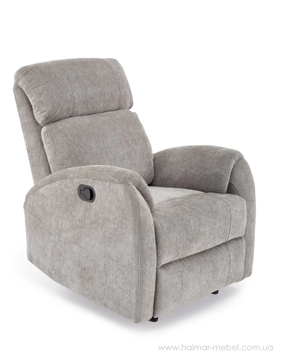 Кресло-реклайнер BLASTER HALMAR серый - привлекательная новинка для комфортного отдыха с функцией механического разложения. В качестве обивки использована ткань серого цвета.