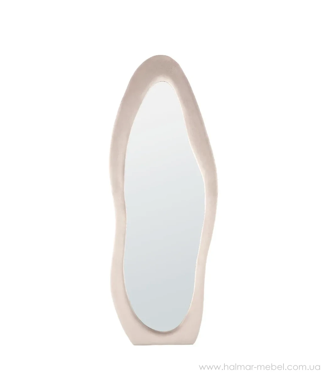 Зеркало напольное FRIGOLA HALMAR бежевый – привлекательная новинка для современного интерьера. Конструкция включает раму неправильной формы из МДФ с обивкой из бархатной ткани бежевого цвета и зеркало серебро.
