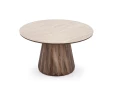 Стол журнальный DIAVOLA HALMAR травертин/орех - интересная новинка 2026 года для современного интерьера. Конструкция столика состоит из каркаса в цвете орех и круглой керамической столешницы в цвете светлого камня.