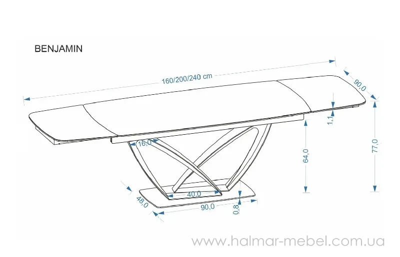 Стол обеденный раскладной BENJAMIN HALMAR – элегантная новинка 2026 года, которая достойно дополнит интерьер современной гостиной. Конструкция состоит из стального каркаса оригинальной формы и керамической столешницы в цвете бежевого мрамора. В разложенном виде длина столешницы составляет 240 см и позволяет разместить 10 человек.