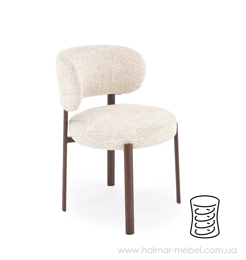 Стул K605 HALMAR бежевый/орех – привлекательная новинка для современного интерьера. Его конструкция состоит из стального каркаса в цвете орех, мягкого сидения и округлой спинки с обивкой из ткани SILENCIO 06 бежевого цвета.