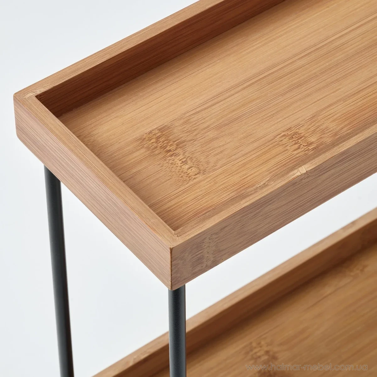 Полиця-надставка на стіл NÅLBLECKA IKEA бамбук - функціональна новинка, яка допоможе організувати зберігання на кухні, в передпокої та інших приміщеннях. Можна ставити на робочу кухонну поверхню, як надставку. Конструкція складається з 2-х бамбукових полиць та сталевого каркасу. Захисні бортики запобігають падіння предметів з поверхні.