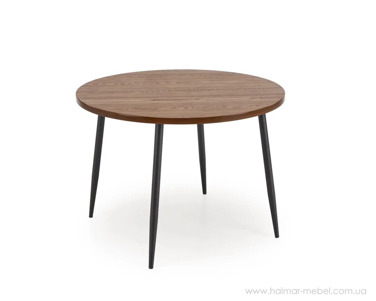 Обідній стіл BARRY HALMAR горіх/чорний - ефектна новинка для сучасного інтер'єру. Конструкція столу складається із сталевих ніжок та круглої стільниці з меламіну.