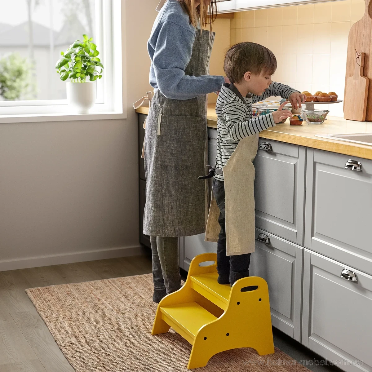 Табурет дитячий зі сходинкою TROGEN IKEA жовтий - привабливий та надійний предмет меблів, який можна використовувати для сидіння, а також як пристосування для полегшення доступу до необхідних речей. Конструкція табурету складається з дерев'яного каркасу та 2-х сходинок.