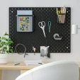 Доска перфорированная комбинированная SKÅDIS IKEA 76х56 черный - популярный элемент организации пространства благодаря своей универсальности, способности экономить место и возможности адаптации к различным потребностям. Стальная конструкция представляет собой доску с рядами отверстий, на которые можно крепить различные предметы, используя специальные крючки или колышки. Перфорированные доски активно используются в мастерских, кухнях, офисах и детских комнатах.