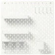 Доска перфорированная комбинированная SKÅDIS IKEA 56х56 белый - популярный элемент организации пространства благодаря своей универсальности, способности экономить место и возможности адаптации к различным потребностям. Стальная конструкция представляет собой доску с рядами отверстий, на которые можно крепить различные предметы, используя специальные крючки или колышки. Перфорированные доски активно используются в мастерских, кухнях, офисах и детских комнатах.