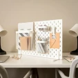 Доска перфорированная комбинированная SKÅDIS IKEA 60х76 белый - популярный элемент организации пространства благодаря своей универсальности, способности экономить место и возможности адаптации к различным потребностям. Стальная конструкция представляет собой доску с рядами отверстий, на которые можно крепить различные предметы, используя специальные крючки или колышки. Перфорированные доски активно используются в мастерских, кухнях, офисах и детских комнатах.