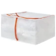 Контейнер для одежды PÄRKLA IKEA белый - популярный аксессуар, предназначенный для удобного хранения и транспортировки вещей. Его конструкция представляет собой коробку прямоугольной формы, верхняя часть которой закрывается при помощи застежки-молнии. Контейнер изготовлен из полиэстера, прочного, износостойкого материала, который хорошо держит форму, устойчив к растяжению и деформации, прост в уходе. В сложенном положении контейнер компактный, занимает мало места.