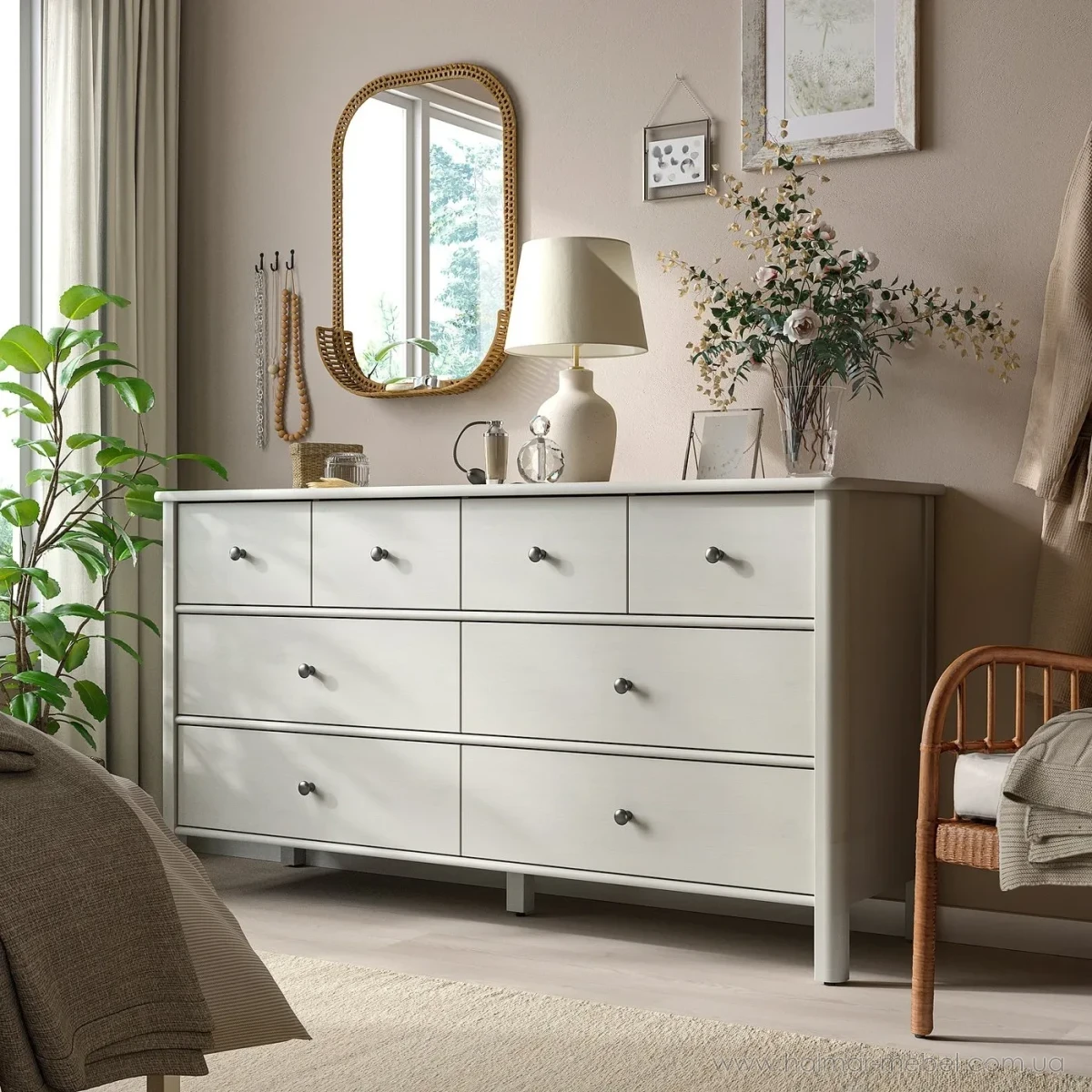 Комод 8ш STOREMOLLA IKEA 171х91 светло-серо-бежевый - элегантная и вместительная модель, которая найдет свое место в любом интерьере и поможет в организации хранения личных вещей. Конструкция комода состоит из корпуса на ножках и 8-и выдвижных ящиков.