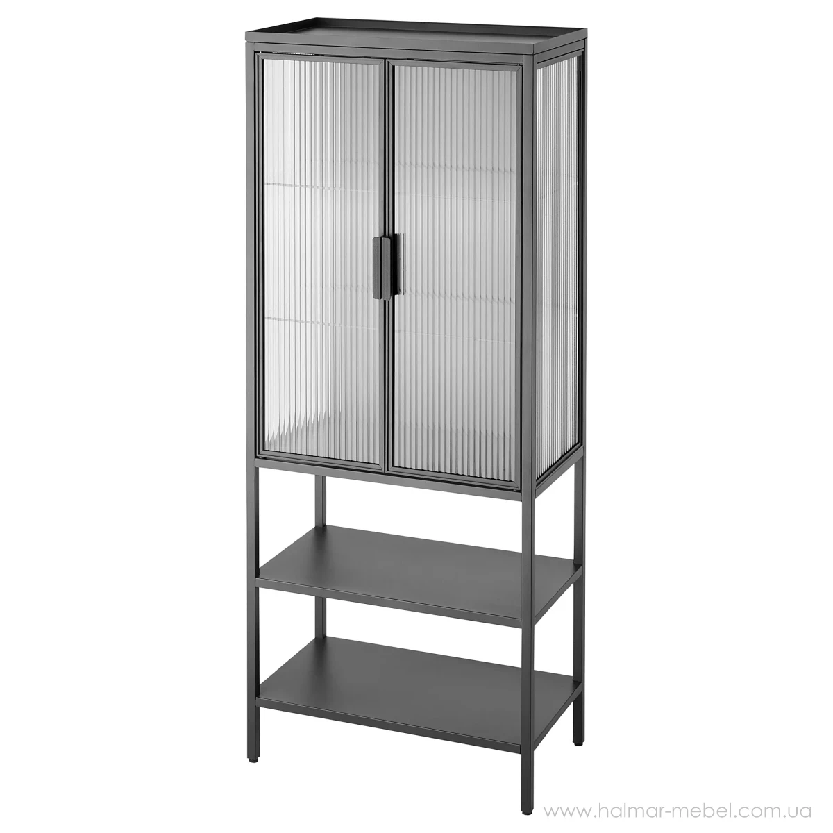 Витрина MOSSJÖN IKEA антрацит - привлекательное и удобное предложение для современного интерьера гостиной, ванной комнаты и т.д. Конструкция привлекает внимание современным дизайном и состоит из 2-дверного корпуса, где находятся две стеклянных полки и 2 открытых полок для хранения вещей или декора. Вместе с другими элементами серии MOSSJÖN можно стильно и функционально оборудовать любое помещение.
