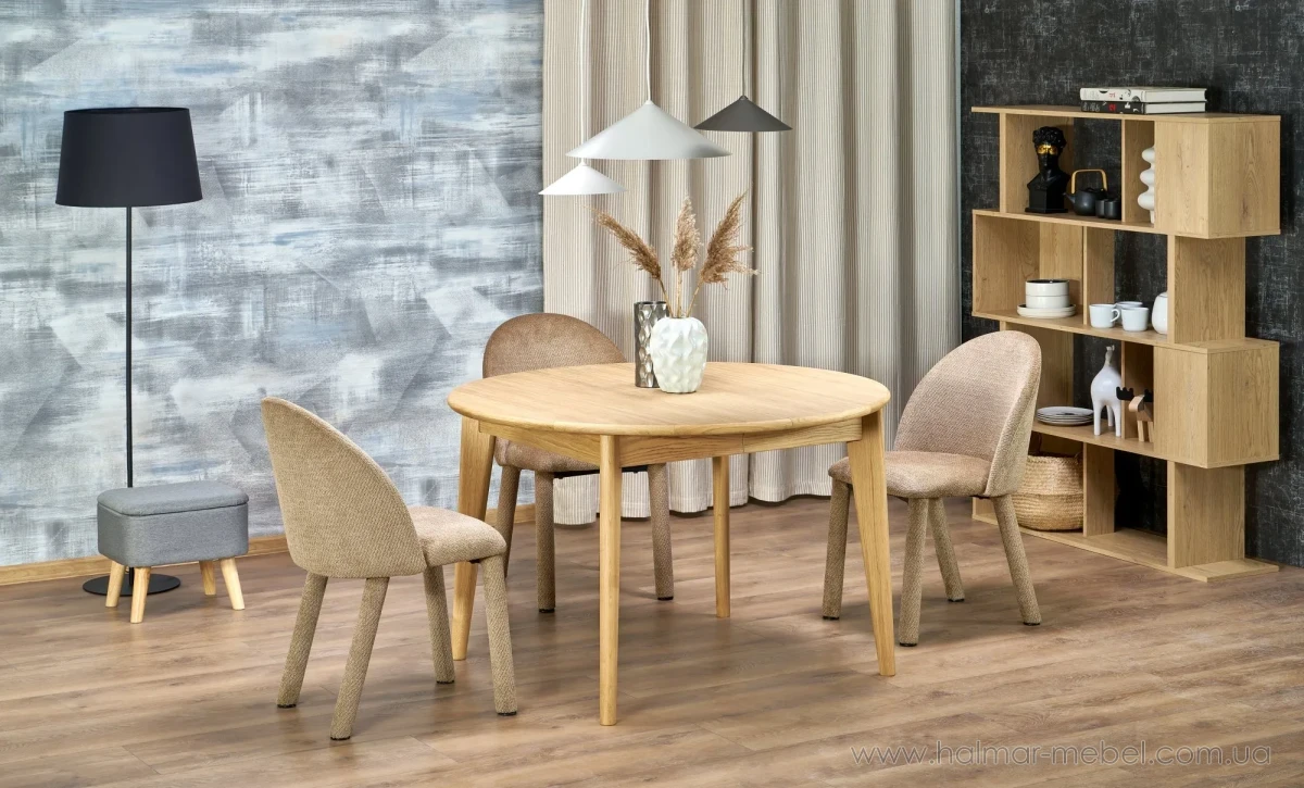 Стіл обідній розсувний MAGNUS HALMAR дуб натуральний матовий - приваблива та практична новинка, яка чудово доповнить навіть невелике приміщення. Конструкція стола влючає в себе каркас з ніжками з масива дуба та круглу шпоновану стільницю. В розкладеному вигляді її довжина складає 200 см та дозволяє розмістити 6 осіб.