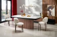 Стіл обідній розкладний FLAVOR HALMAR білий мармур/горіх - ефектна новинка 2026 року, яка гідно доповнить інтер'єр сучасної вітальні. Конструкція стола включає в себе масивний каркас в кольорі горіх та керамічну стільницю з ефектом білого мармуру. В розкладеному вигляді довжина стільниці складає 300 см та дозволяє розмістити 12 осіб.
