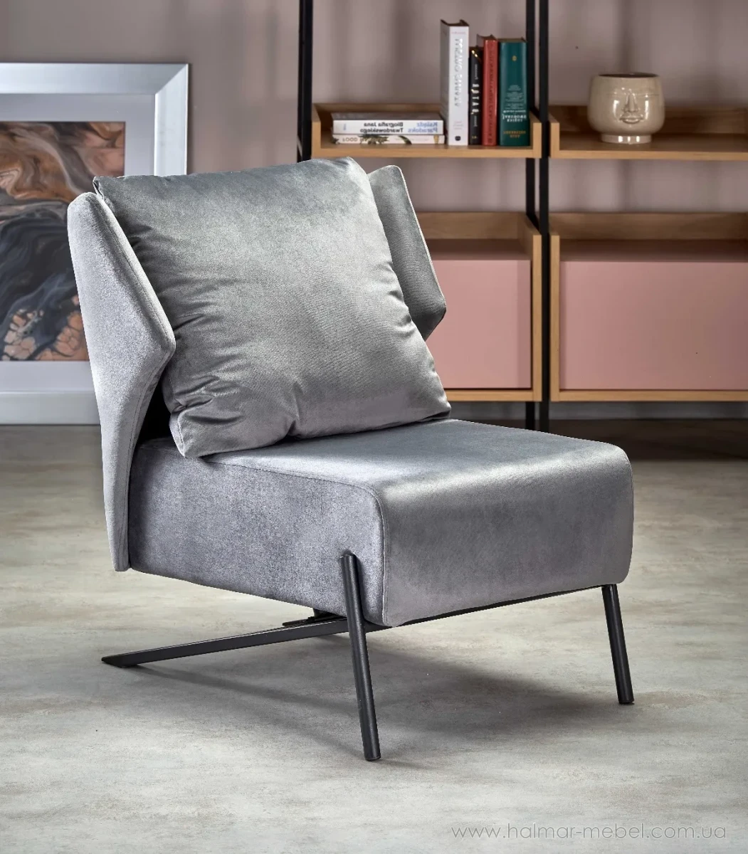 Крісло VICTUS Halmar сірий - стильна новинка для сучасного інтер'єру, яка привертає увагу оригінальним дизайном та чудовою якістю виконання. Конструкція крісла складається із сталевого каркаса, м'якого сидіння та високої спинки. Декоративна подушка створює додатковий комфорт. Як оббивка використана оксамитова тканина красиво-сірого кольору.