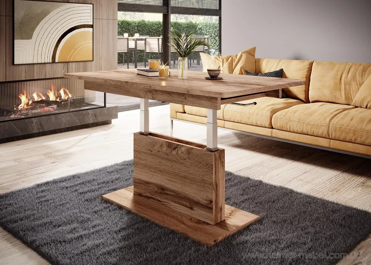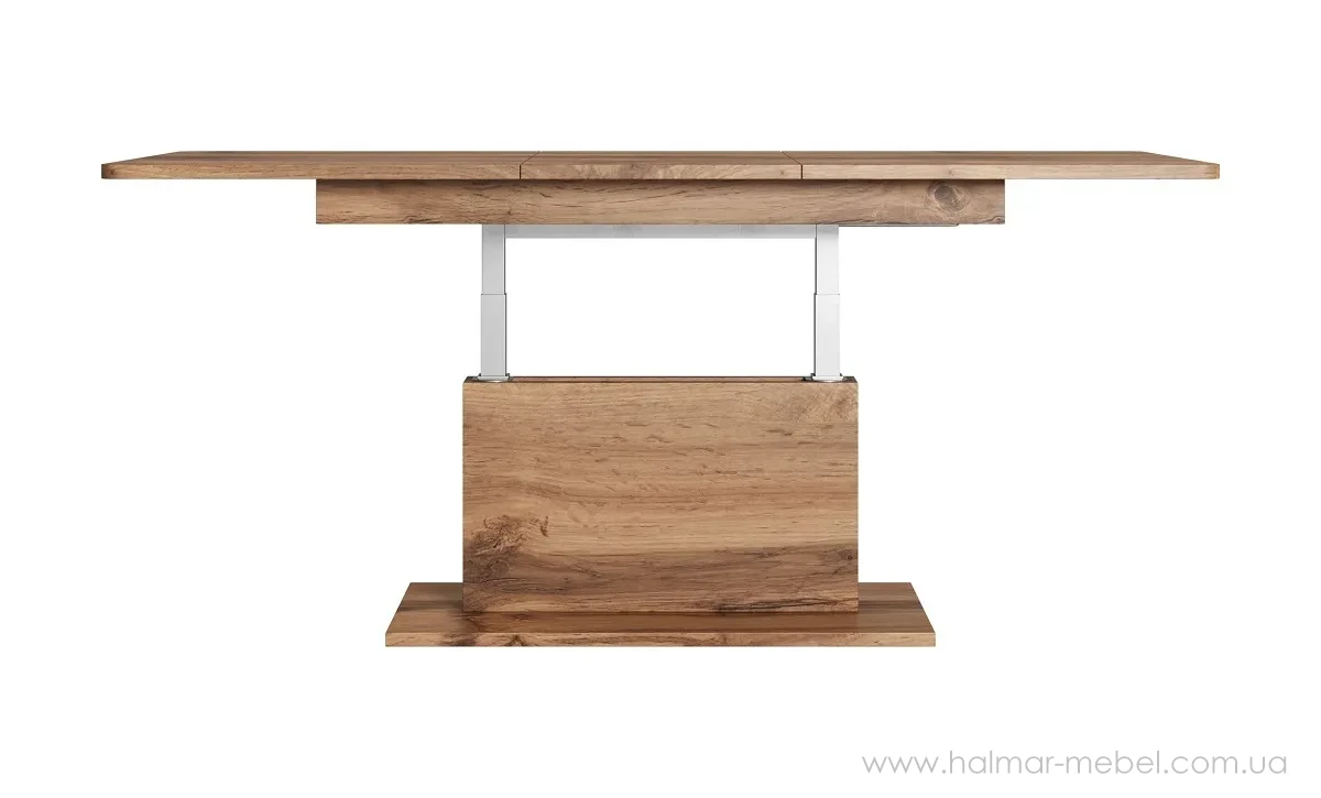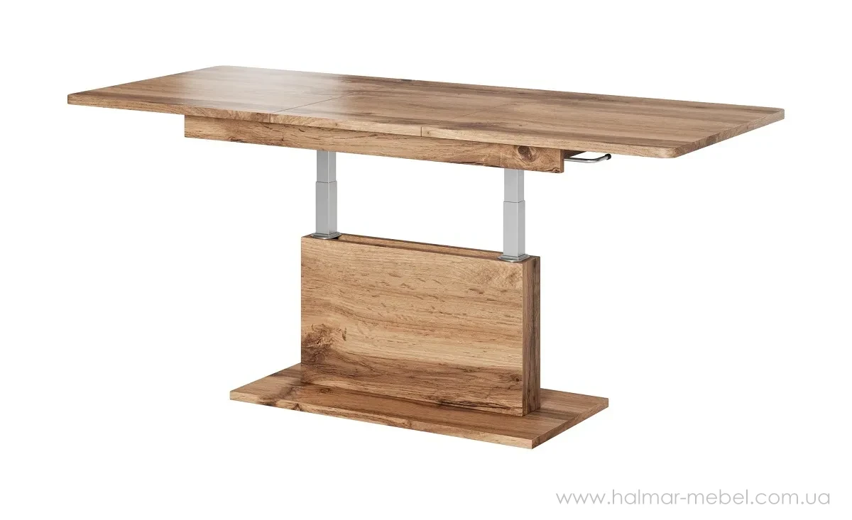 Журнальний стіл-трансформер BUSETTI Halmar дуб вотан- стильна та функціональна новинка, яка знайдеться гідне місце в інтер'єрі будинку та офісу. Конструкція моделі складається з каркасу та стільниці прямокутної форми. За допомогою простих маніпуляцій стіл трансформується на обідню модель.