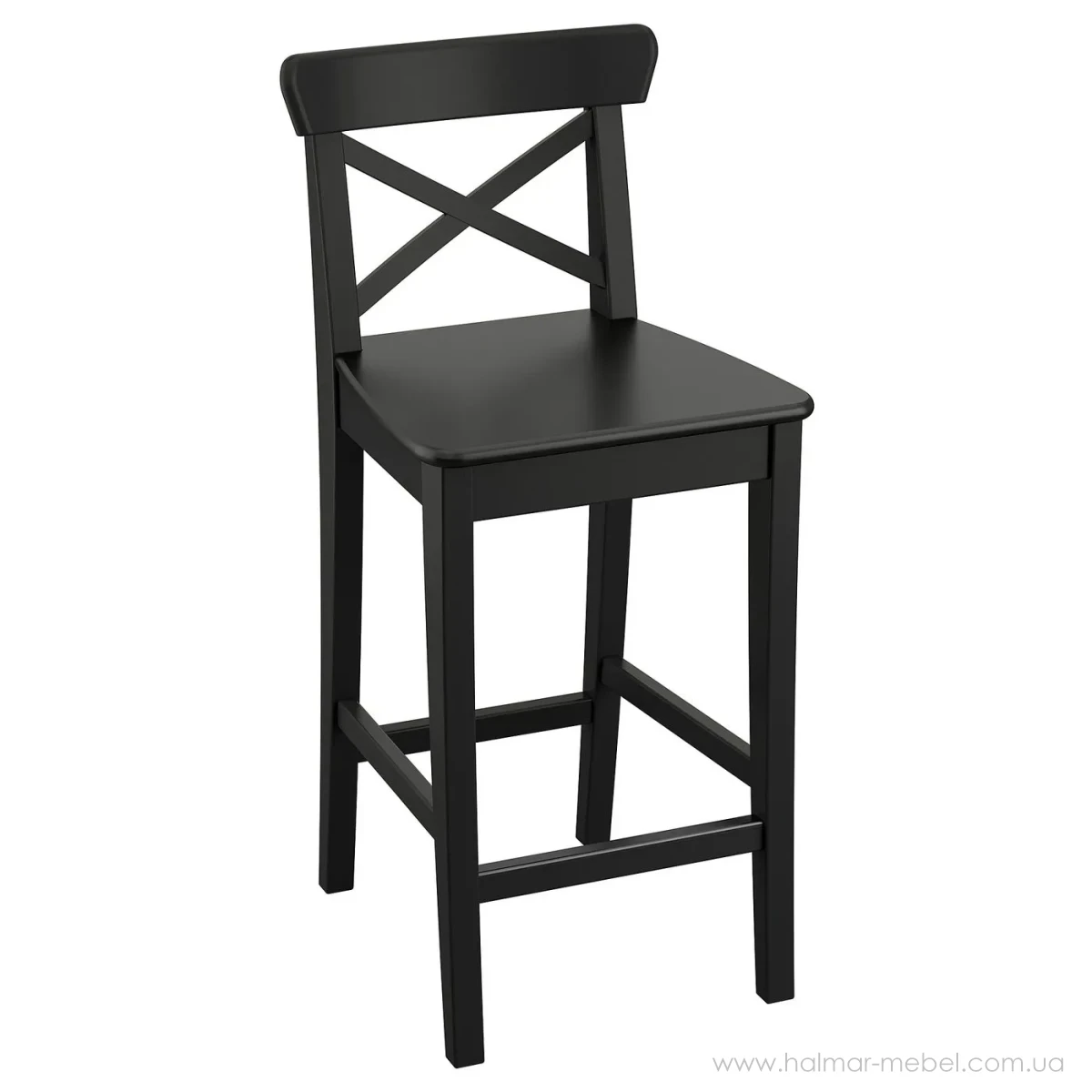 Стілець барний ROSENTORP IKEA чорний - приваблива та зручна модель для використання в домашніх умовах иа комерційних закладах із барним столом або стільницею висотою 87-91 см. Конструкція стільця складається з надійного дерев'яного каркаса, жорсткого сидіння та спинки. Опора для ніг, розташована між передніми ніжками стільця, забезпечує додаткову підтримку та дозволяє розслабитися під час сидіння. Для більшого комфорту можна додати на сидіння подушку Ikea.