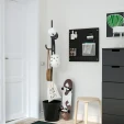 Дошка перфорована комбінована SKÅDIS IKEA 56х56 чорний (або пегборд) – популярний елемент організації простору завдяки своїй універсальності, здатності заощаджувати місце та можливості адаптації до різних потреб. Сталева конструкція є дошкою з рядами отворів, на які можна кріпити різні предмети, використовуючи спеціальні гачки або кілочки. Перфоровані дошки активно використовуються у майстернях, кухнях, офісах та дитячих кімнатах.