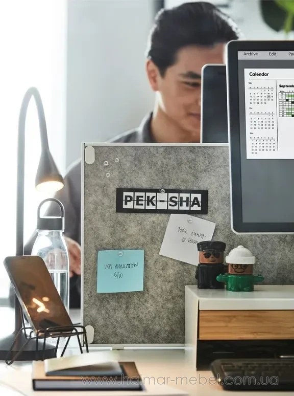 TROTTEN IKEA являє собою двосторонню дошку для нотаток, одна сторона дозволяє робити нотатки маркером на поверхні, на іншій можна кріпити паперові листочки за допомогою канцелярських кнопок-гвоздиків. Дошка легко кріпиться до краю столу, а також на поверхні двосторонньої шафи TROTTEN і дозволяє швидко додавати або прибирати інформаційні матеріали, нотатки, розклади, фотографії та інші важливі дрібниці, допомагаючи підтримувати порядок на робочому столі.