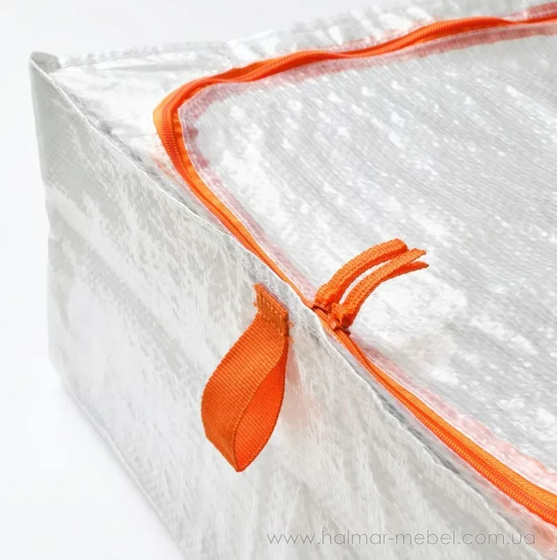 Контейнер для одягу PÄRKLA IKEA білий – популярний аксесуар, призначений для зручного зберігання та транспортування речей. Його конструкція є коробкою прямокутної форми, верхня частина якої закривається за допомогою застібки-блискавки. Контейнер виготовлений з поліестеру, міцного, зносостійкого матеріалу, який добре тримає форму, стійкий до розтягування та деформації, простий у догляді. У складеному положенні контейнер компактний, займає мало місця.