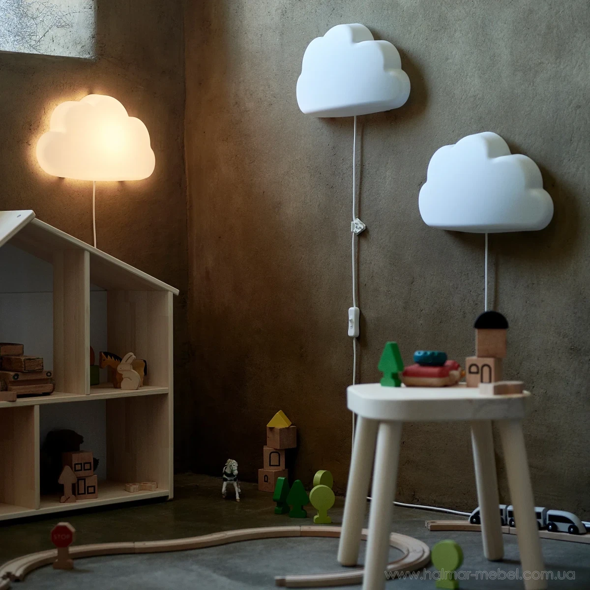 Настінна LED лампа UPPLYST IKEA біла хмара - приваблива пропозиція для інтер'єру дитячої кімнати. Світильник у вигляді білої хмари забезпечує м'яке освітлення та створює комфортну атмосферу в приміщенні. Конструкція світильника складається з корпусу, кабелю та лампочки, яку можна замінити за необхідністю.
