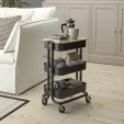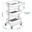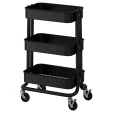 Візок RÅSKOG IKEA чорний - компактна та зручна система зберігання для кухонного, офісного приладдя тощо. Візок також забезпечить додатковий корисний простір в санвузлі, на балконі та інших приміщеннях. Колищатка дозволяють легко пересувати конструкцію, а система блокування забезпечує її стійкість.