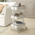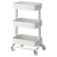 Візок RÅSKOG IKEA білий - компактна та зручна система зберігання для кухонного, офісного приладдя тощо. Візок також забезпечить додатковий корисний простір в санвузлі, на балконі та інших приміщеннях. Колищатка дозволяють легко пересувати конструкцію, а система блокування забезпечує її стійкість.