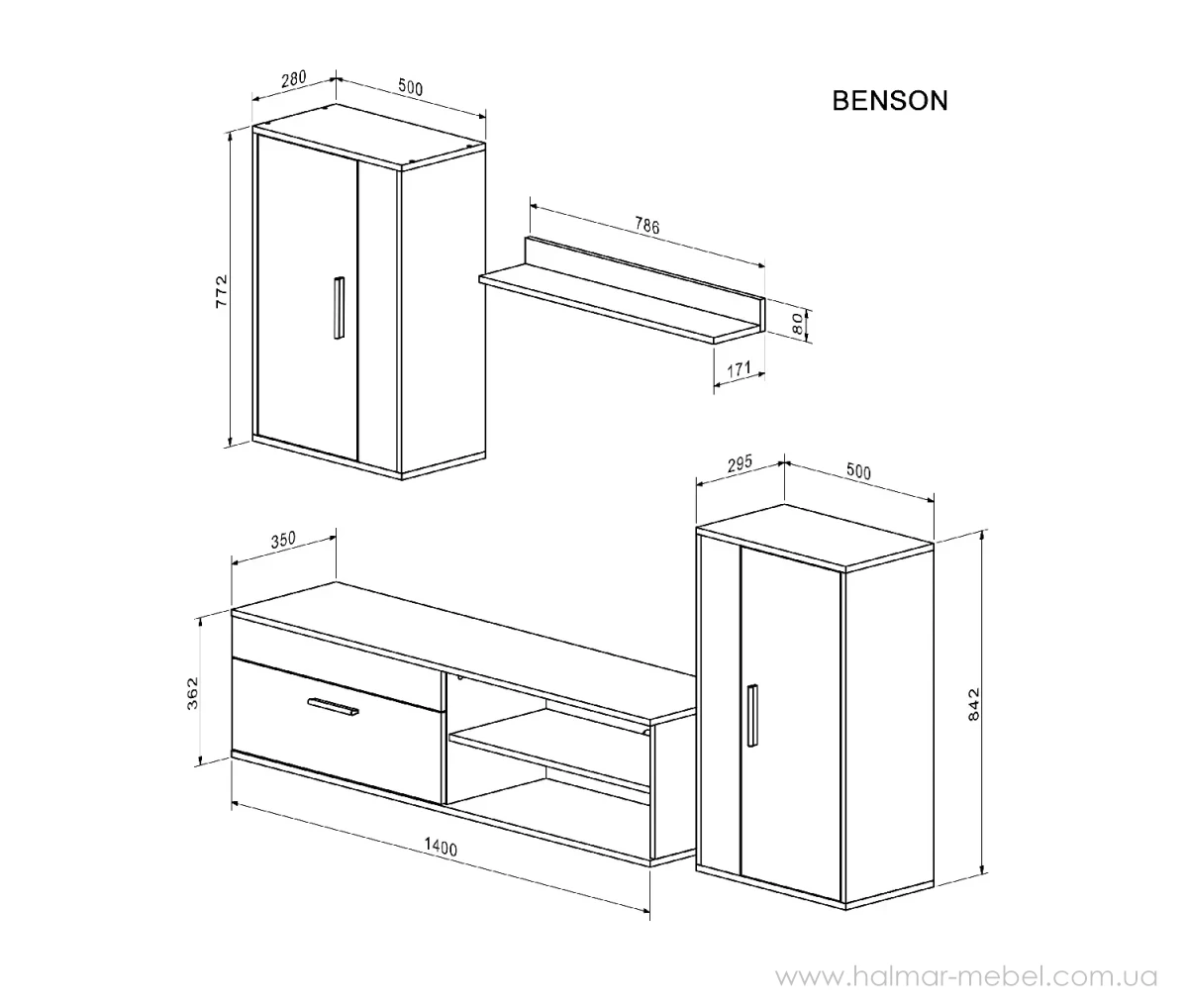 Комплект меблів для вітальні BENSON HALMAR дуб артизан/кашемір - приваблива та функціональна новинка для сучасної вітальні.