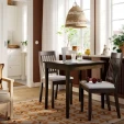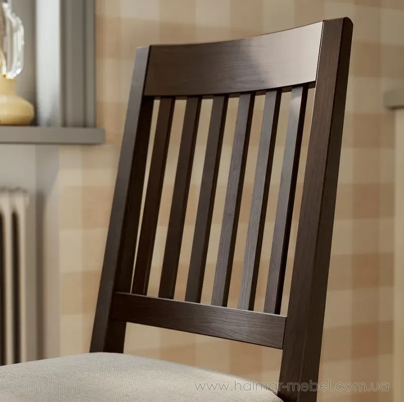Комплект обідній стіл та 2 стільці NÄSINGE/NÄSINGE IKEA темно-коричневий/світло-бежевий - приваблива та практична новинка із серії NÄSINGE для облаштування обідньої зони. В комплект входить темно-коричневий стіл із дерев'яними ніжками та меламіновою стільницею. Профільовані краї стільниці пом'якшують гострі кути, роблячи їх безпечнішими, а також додають елегантності виробу. Обідній комплект доповнюють 2 зручні дерев'яні стільці з високою спинкою та м'яким сидінням оббитим тканиною Kilanda світло-бежевого кольору.