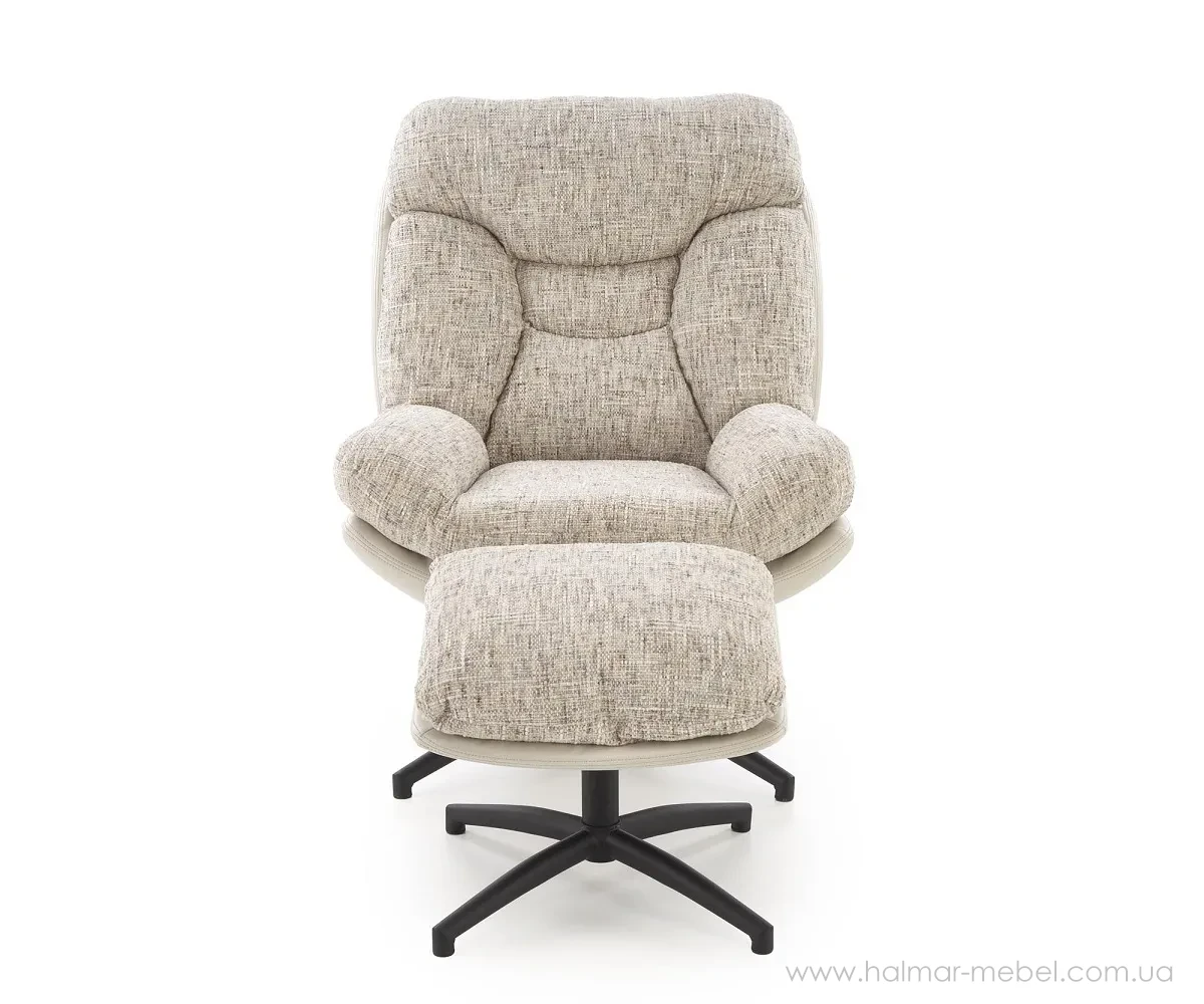 Крісло KRONOS HALMAR бежевий – приваблива новинка 2025 року з підставкою для ніг для комфортного відпочинку. Конструкція крісла складається із сталевого каркаса та м'якого сидіння з високою спинкою. Як оббивка використана бежева тканина. Для зовнішньої поверхні крісла – екошкіра бежевого кольору. Функціональною особливістю цієї моделі є наявність функції колиски.