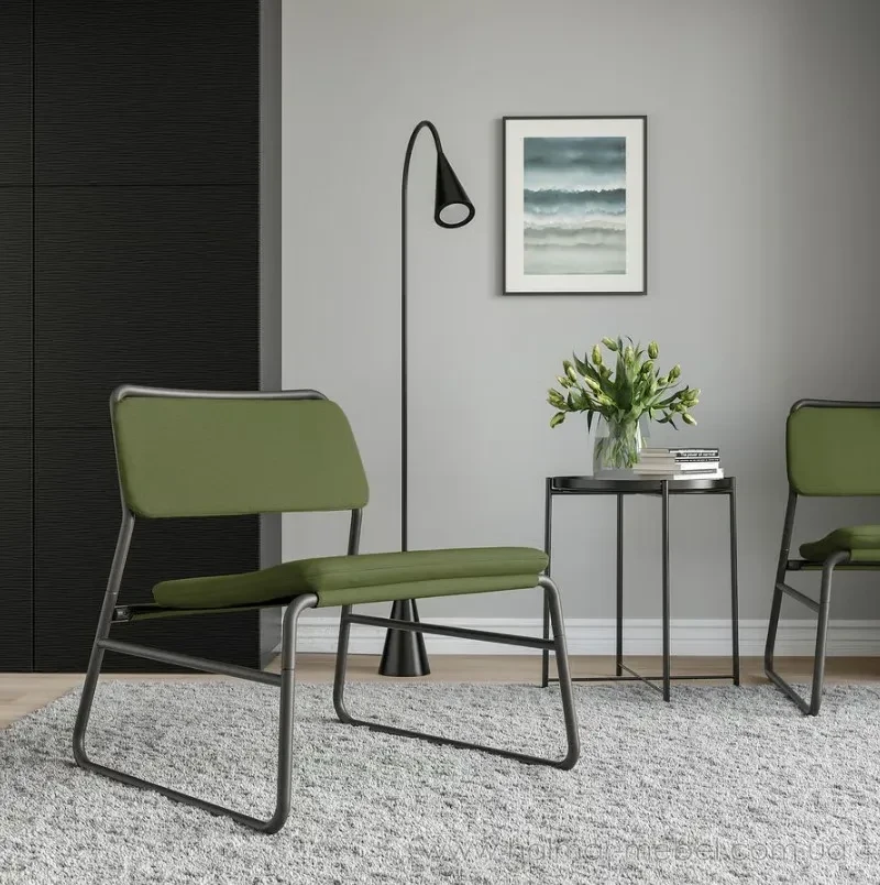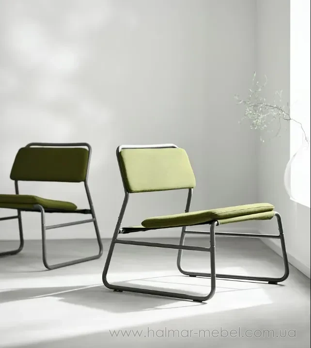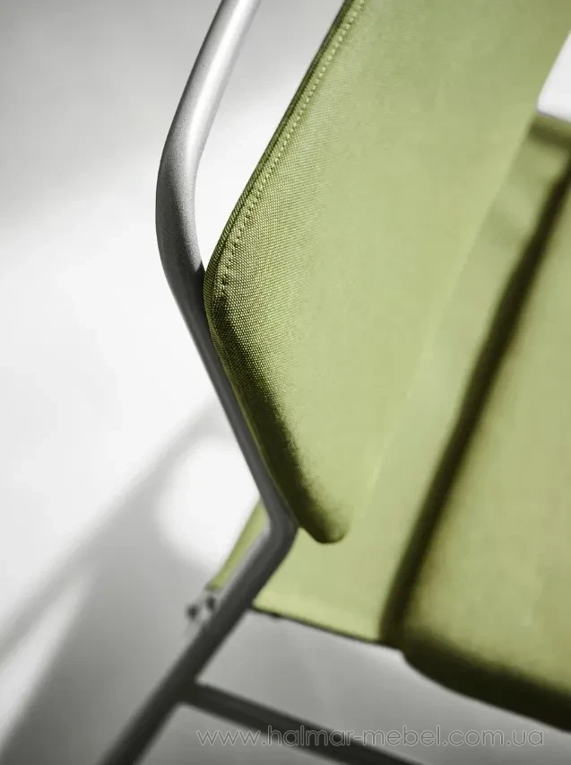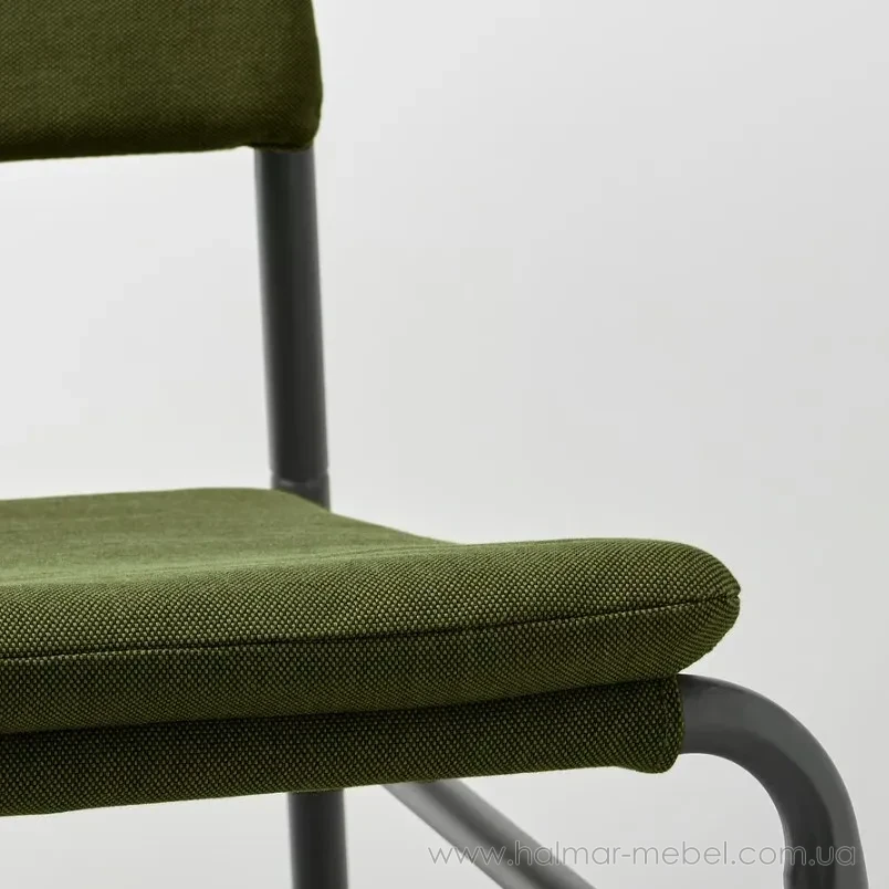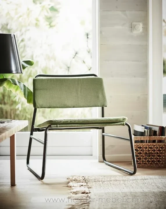 Крісло LINNEBÄCK IKEA оливковий - практична модель для домашніх і комерційних приміщень. Крісло привертає увагу стильним і якісним виконанням. Його конструкція складається зі сталевого каркаса, м'якого сидіння і спинки з оббивкою з тканини Orrsta оливкового кольору. Поверхні прості, зносостійкі і невибагливі у догляді.