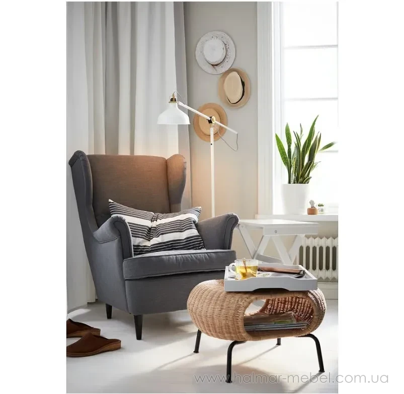 Запропонований асортимент кольорів оббивки дозволяє вибрати варіант, що найбільш підходить до вашого інтер'єру. Додатково також можна купити підставку під ноги серії STRANDMON, щоб створити куточок для комфортного відпочинку.
