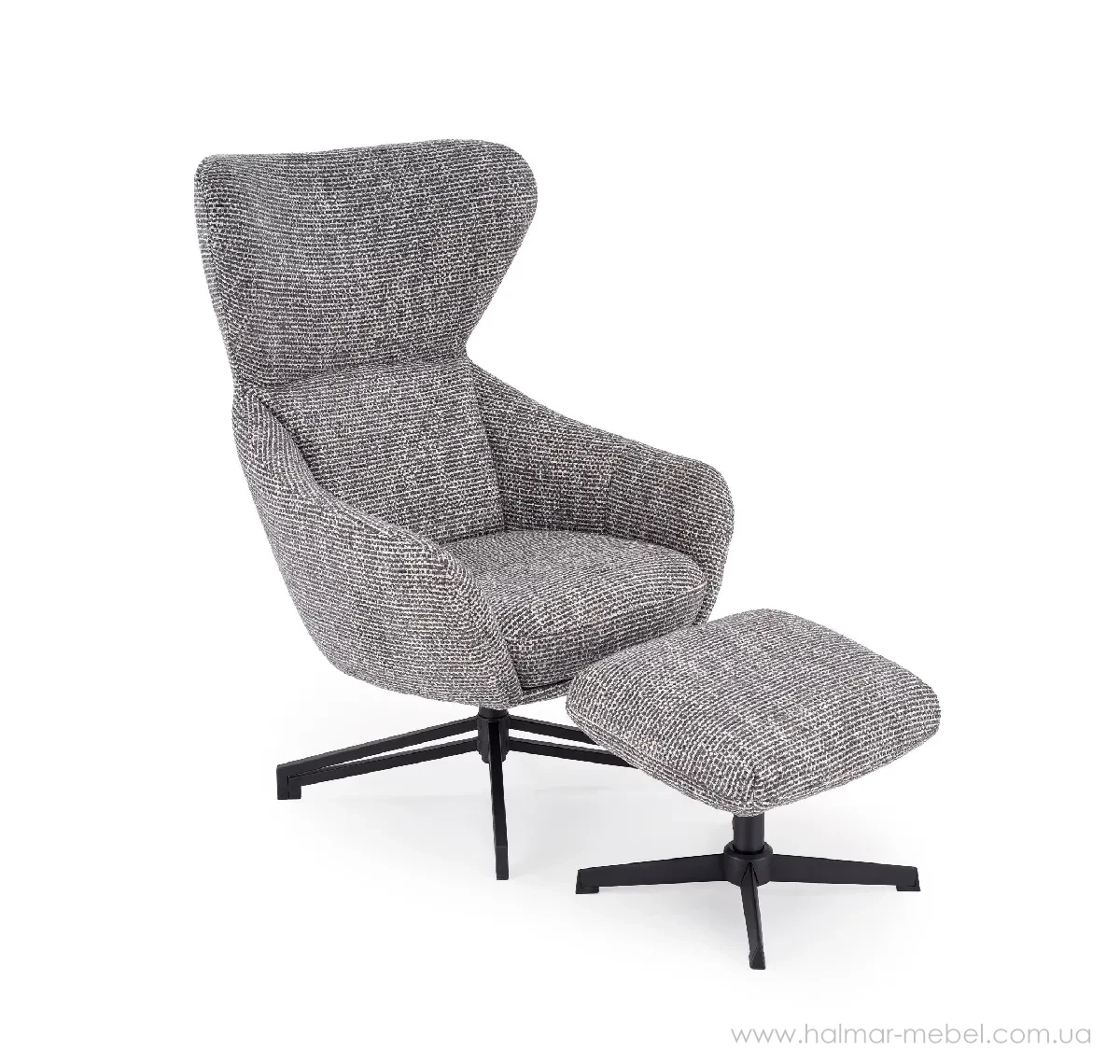 Крісло поворотне FREDY HALMAR сірий - приваблива новинка 2026 року з підставкою для ніг для комфортного відпочинку. Конструкція крісла складається із сталевого каркаса та м'якого сидіння з високою спинкою. Як оббивка використана тканина SILENCIO 97 сірого кольору. Функціональною особливістю цієї моделі є наявність функція повороту сидіння.