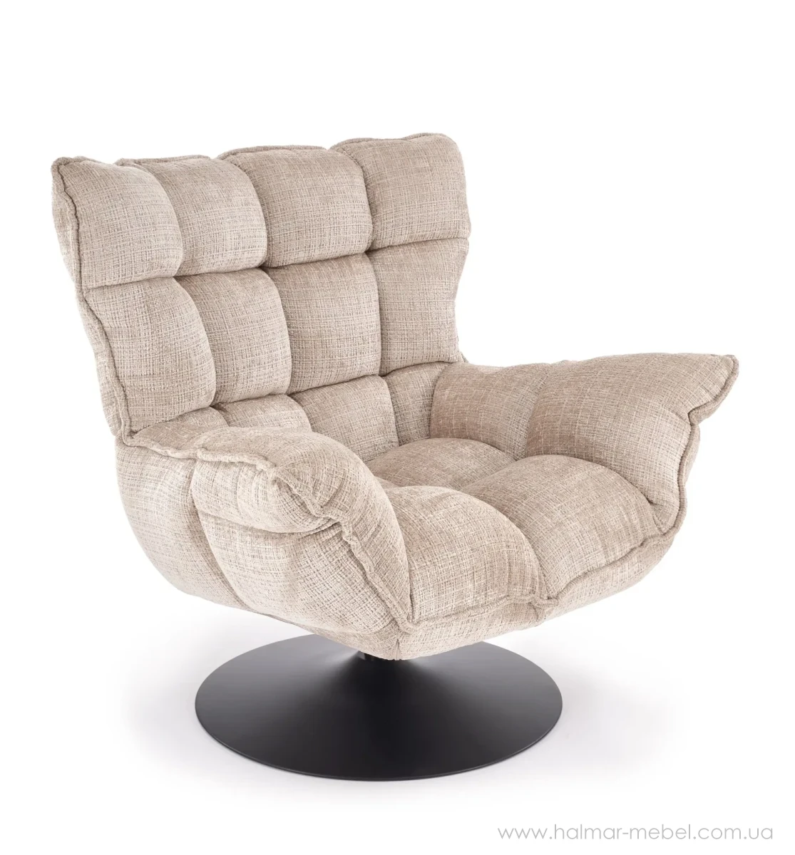 Крісло поворотне HAGEN HALMAR бежевий - стильна новинка 2026 для комфортного відпочинку. Конструкція крісла складається із сталевого каркаса та м'якого зручного сидіння з високою спинкою. Як оббивка використана тканина CREMONA бежевого кольору. Функціональною особливістю цієї моделі є функції повороту сидіння та колиски.