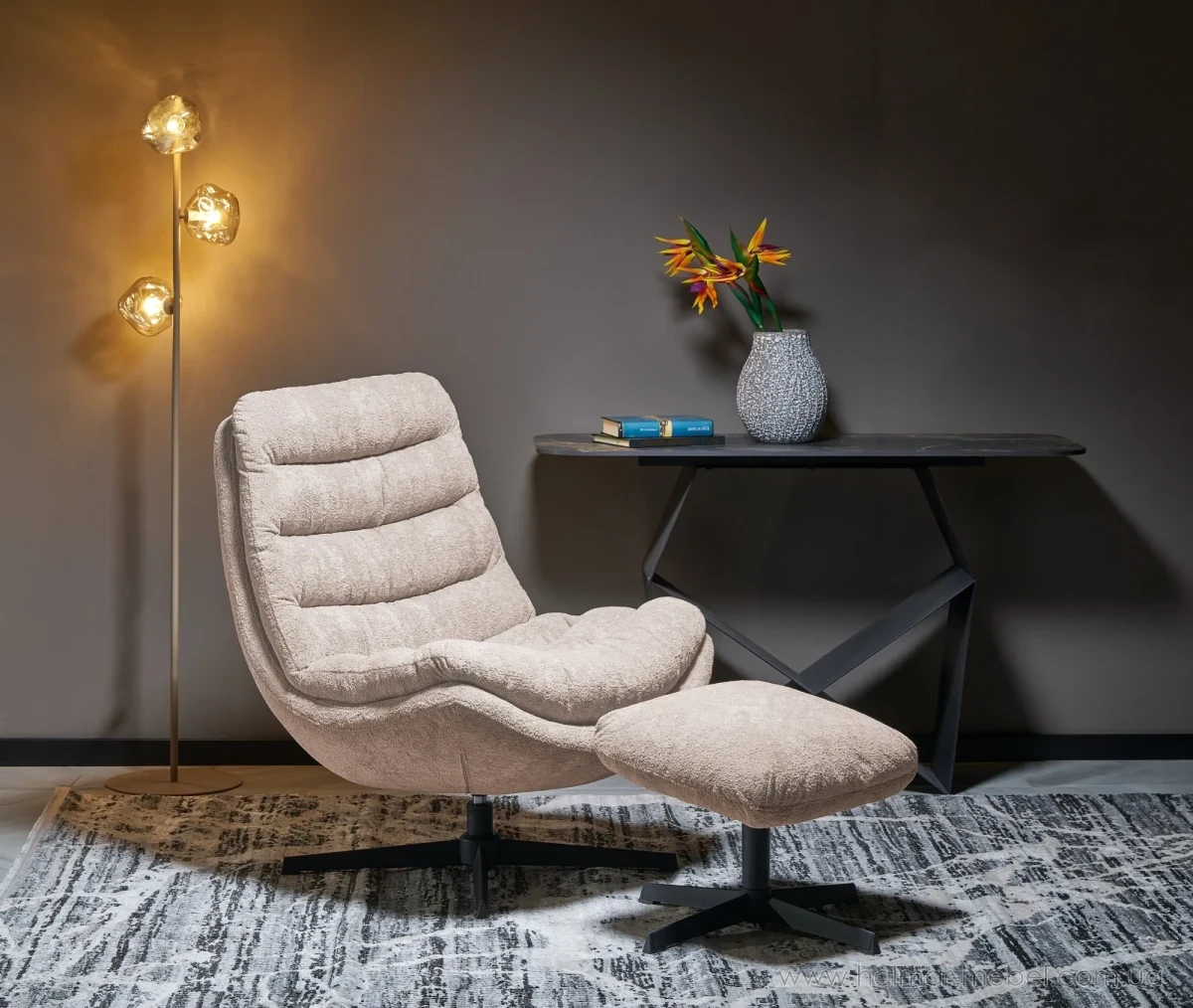 Крісло поворотне OLYMPIC HALMAR капучино - приваблива новинка 2026 року з підставкою для ніг для комфортного відпочинку. Конструкція крісла складається із сталевого каркаса та м'якого сидіння з високою спинкою. Як оббивка використана тканина MONTE в кольорі капучино. Функціональною особливістю цієї моделі є наявність функції повороту сидіння.