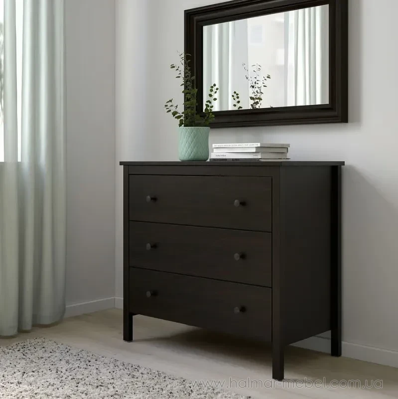 Комод 3ш KOPPANG IKEA 90х83 темно-коричневий - елегантна та функціональна модель, яка знайде своє місце у будь-якому інтер'єрі та допоможе в організації зберігання особистих речей. Конструкція комода складається з корпусу на ніжках та 3-х висувних шухляд.
