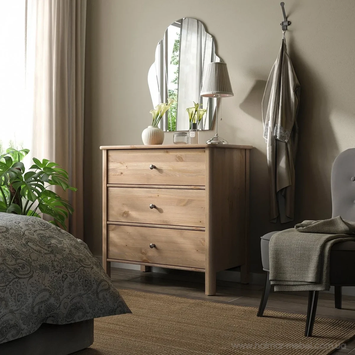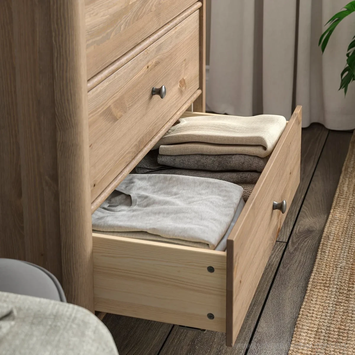 Комод 3ш STOREMOLLA IKEA 93х91 світло-сіро-бежевий - елегантна та містка модель, яка знайде своє місце у будь-якому інтер'єрі та допоможе в організації зберігання особистих речей. Конструкція комода складається з корпусу на ніжках та 3-х висувних шухляд.