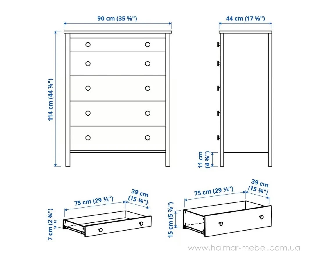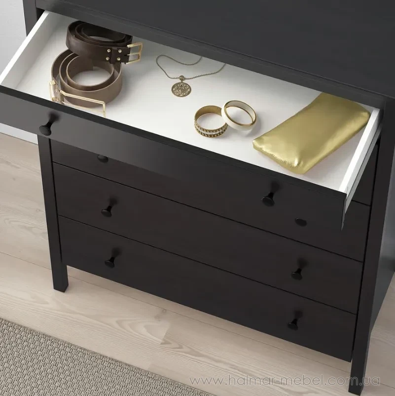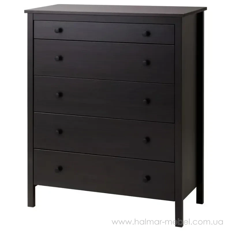 Комод 5ш KOPPANG IKEA 90х114 темно-коричневий - елегантна та функціональна модель, яка знайде своє місце у будь-якому інтер'єрі та допоможе в організації зберігання особистих речей. Конструкція комода складається з корпусу на ніжках та 5-и висувних шухляд.