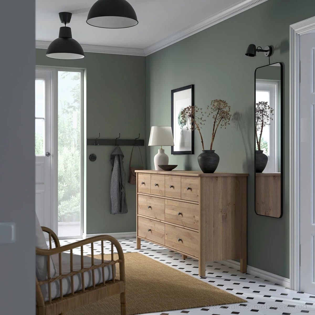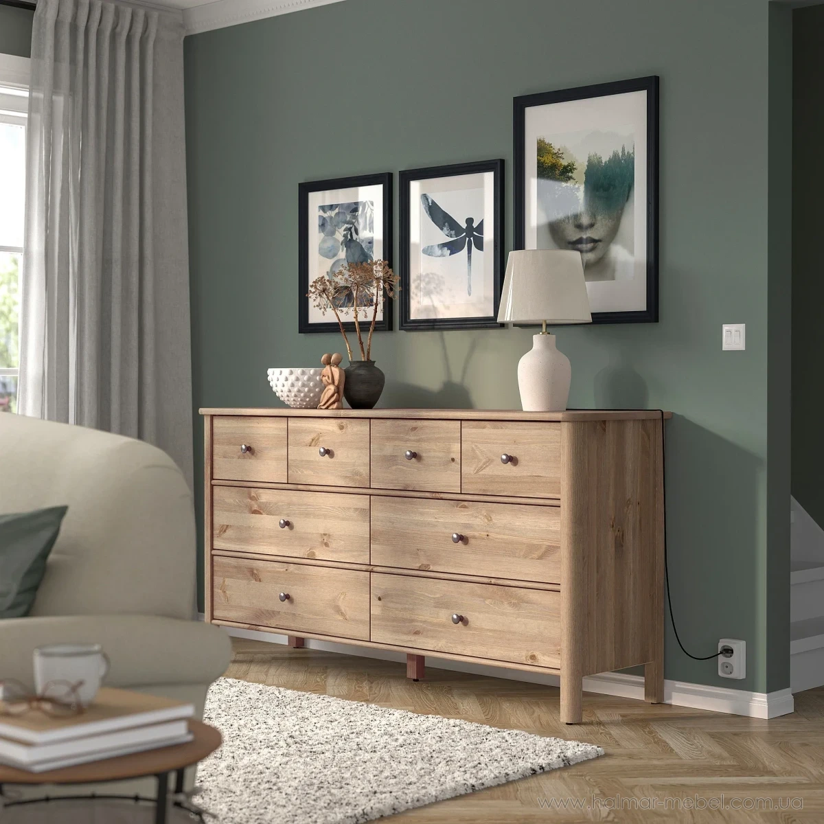 Комод 8ш STOREMOLLA IKEA 171х91 сіро-коричневий - елегантна та містка модель, яка знайде своє місце у будь-якому інтер'єрі та допоможе в організації зберігання особистих речей. Конструкція комода складається з корпусу на ніжках та 8-и висувних шухляд.