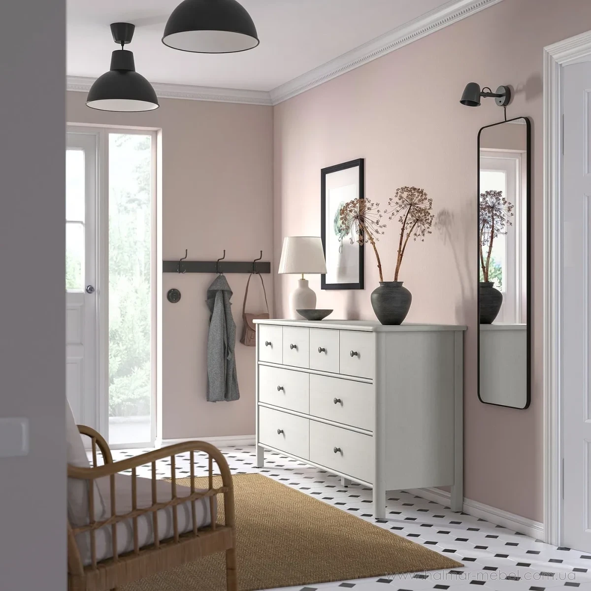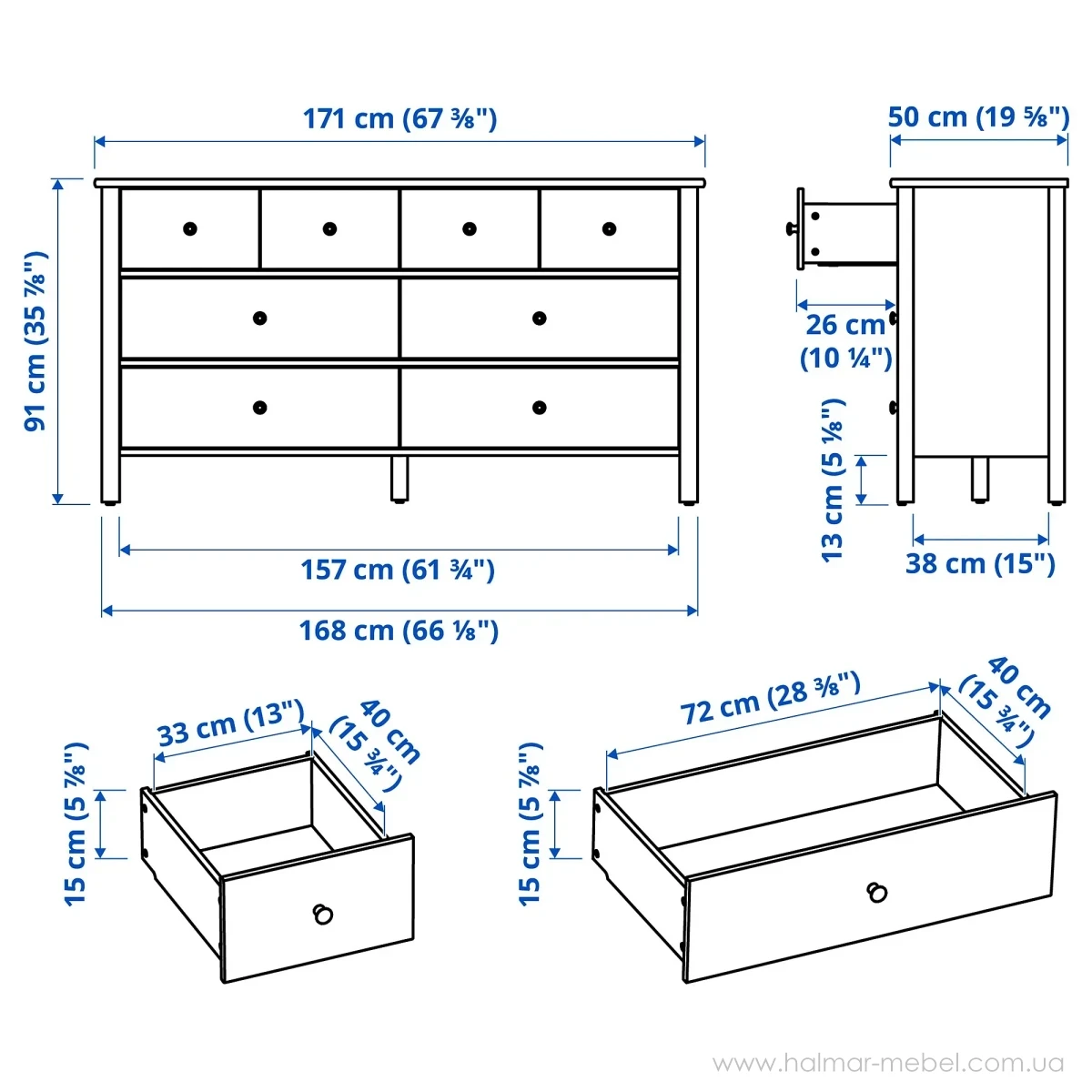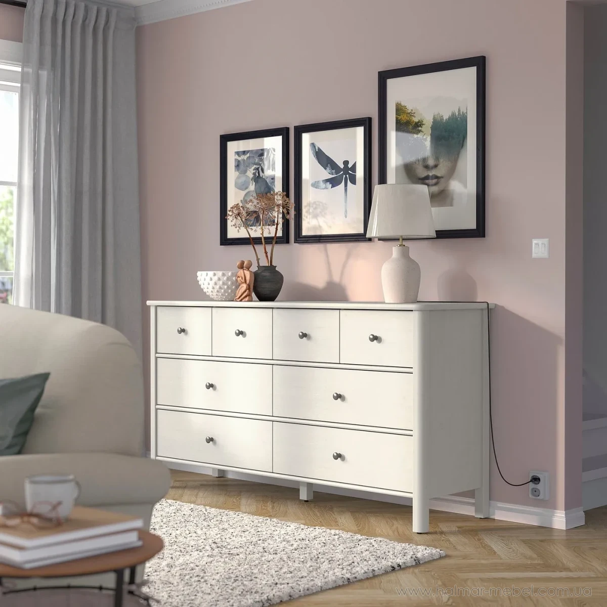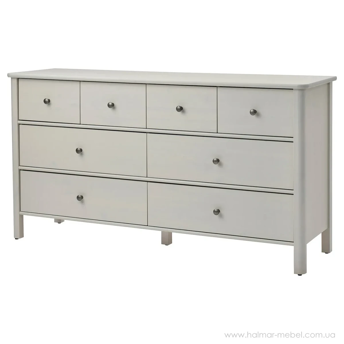 Комод 8ш STOREMOLLA IKEA 171х91 світло-сіро-бежевий - елегантна та містка модель, яка знайде своє місце у будь-якому інтер'єрі та допоможе в організації зберігання особистих речей. Конструкція комода складається з корпусу на ніжках та 8-и висувних шухляд.