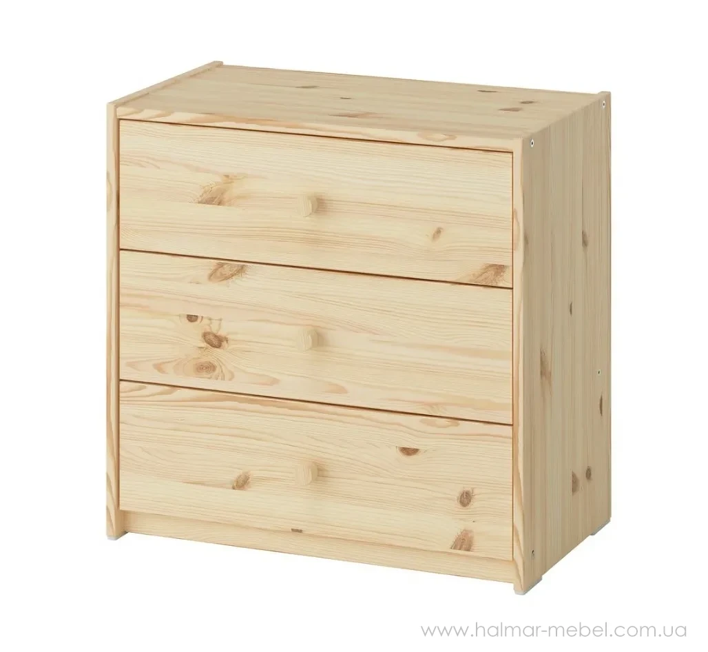 Комод RAST IKEA сосна – проста, надійна модель у скандинавському стилі. Не дивлячись на компактні розміри, комод досить місткий та допоможе в організації зберігання особистих речей і корисних дрібниць. Його конструкція виконана з масиву сосни, поверхні можна обробляти і фарбувати, що дозволяє не тільки змінити зовнішній вигляд, але й захистити деревину.