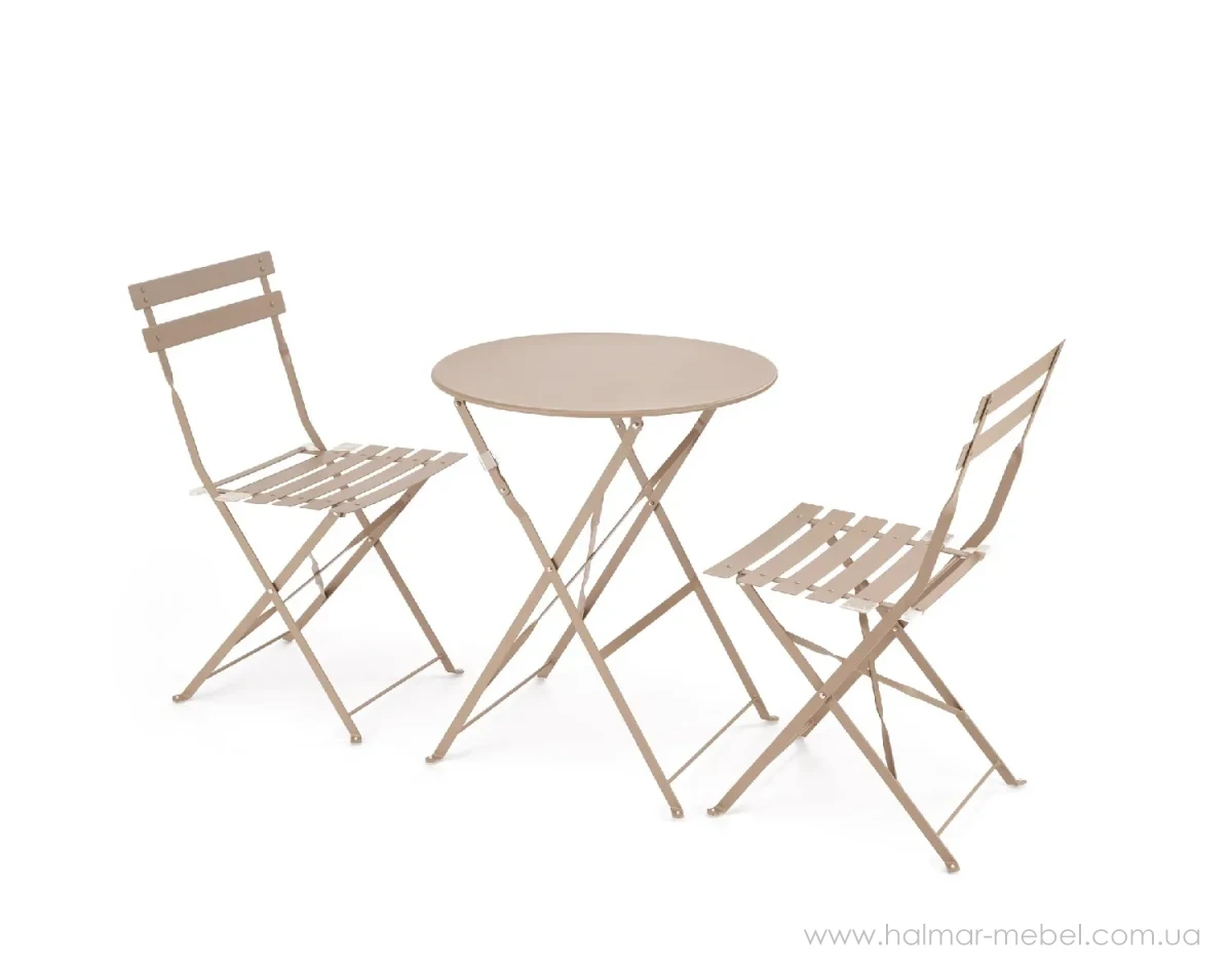 Комплект садових меблів LIVORNO HALMAR капучино - приваблива та практична пропозиція для дачі, балкона, тераси, кафе та інших приміщень. В комплект входять складний стіл з круглою стільницею та 2 складних стільця. Комплект LIVORNO HALMAR легкий і компактний, завдяки складній конструкції не займає багато місця при зберіганні та транспортуванні.
