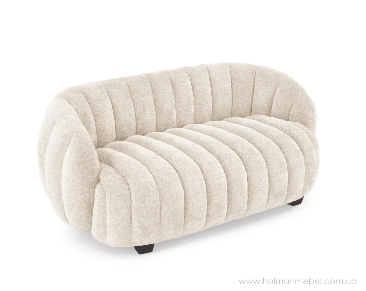 Диван GASPAR XL HALMAR кремовий - стильна та комфортна новинка для облаштування зони відпочинку. Конструкція 2-місної моделі складається з м'якого сидіння та зручної округлої спинки. Оббивка - тканина букле кремового кольору.