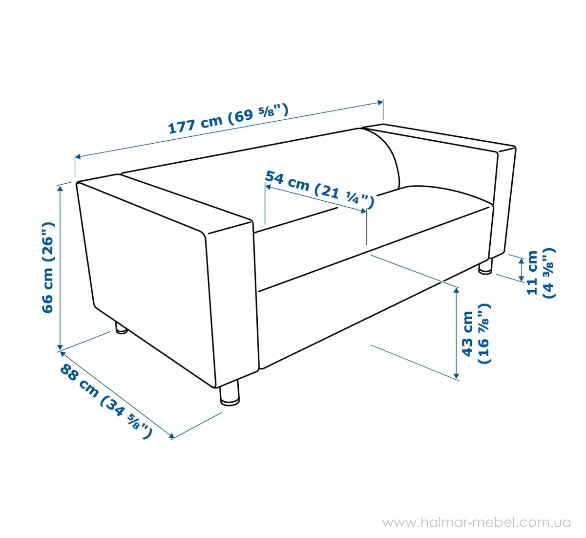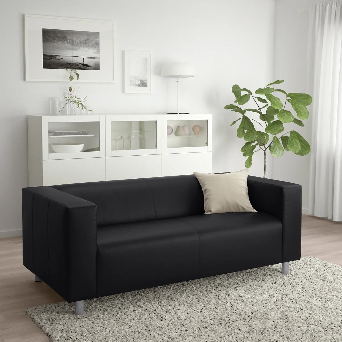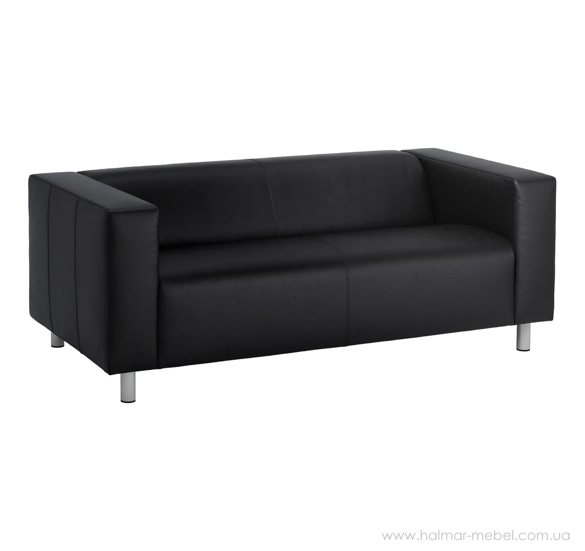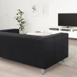 Диван KLIPPAN IKEA чорний - стильна та надійна 2-місна модель для сучасного інтер'єру. Конструкція нерозкладного дивана включає невеликі сталеві ніжки, м'яке сидіння зі зручною спинкою і підлокітниками. Як оббивка використана практична тканина Bombstad чорного кольору, яка є комбінацією поліестера і бавовни, а також захисний шар з поліуретану. Поверхня міцна, гладка, стійка до стирання та вигоряння, проста у догляді.
