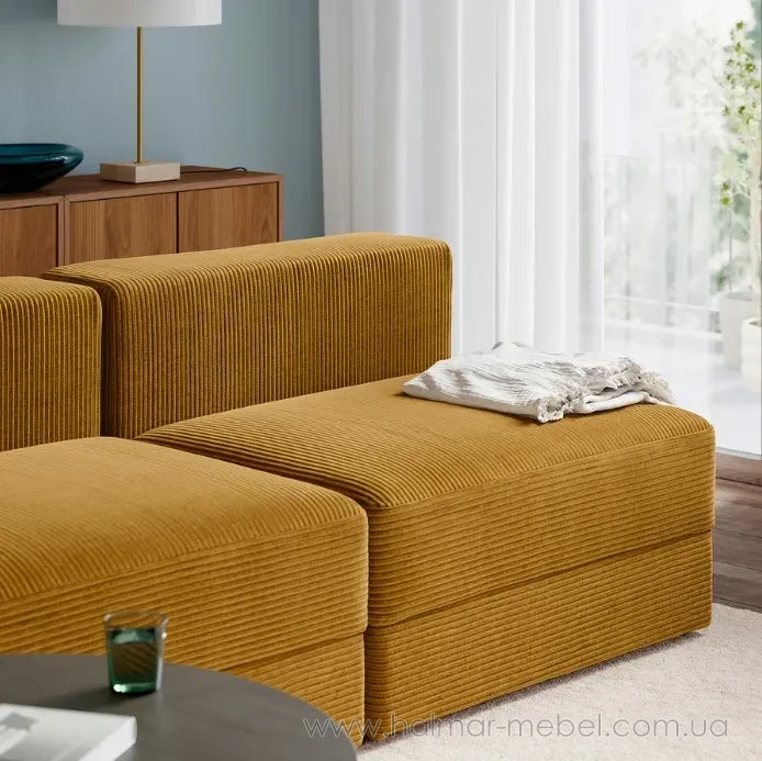 Диван модульний 5-місний JÄTTEBO IKEA жовто-коричневий - стильна та зручна новинка для домашнього або комерційного приміщення. Серія JÄTTEBO привртає увагу лаконічним дизайном, функціональністью та якістю виконання. За допомогою різних елементів ви можете реалізувати власний проект зони відпочинку. Модуль розрахований на 1.5 місця, має нішу для зберігання під сидінням. Як оббивка використана тканина Samsala жовто-коричневого кольору. Чохол можна зняти та прати в автоматичному режимі.