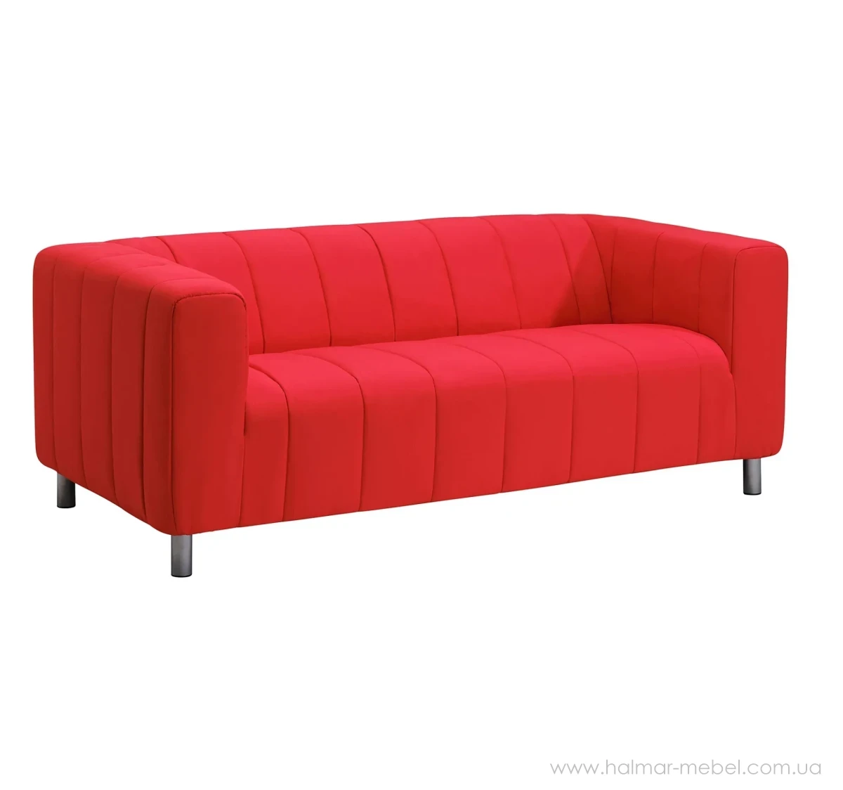 Диван KLIPPAN IKEA яскраво-червоний - ефектна та зручна 2-місна модель для сучасного інтер'єру. Конструкція нерозкладного дивана включає невеликі сталеві ніжки, м'яке сидіння зі спинкою і підлокітниками. Як оббивка використана тканина Långban яскраво-червоного кольору. Поверхня міцна, стійка до стирання та вигоряння, проста у догляді. Чохол можна зняти та прати в автоматичному режимі.