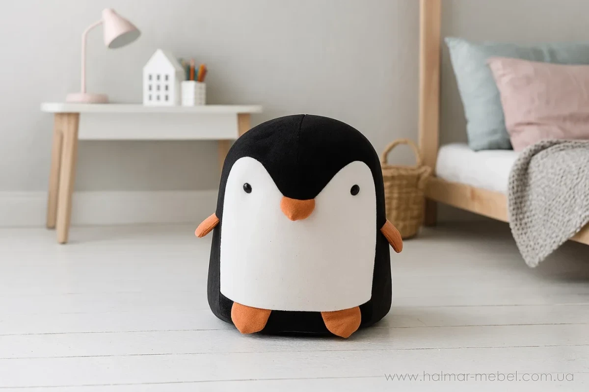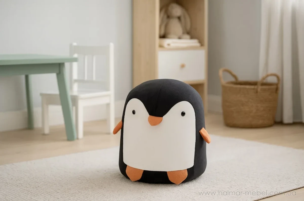 Дитячий пуф PINGWINEK CHOMIC - чарівна новинка для наших маленьких користувачів. Цей елемент ідеально доповнить кімнату дитини, а також інтер'єр ясел, дитячого садочка або розвиваючих центрів, де допоможе створити комфортну і доброзичливу атмосферу. Пуф у вигляді пінгвінчика складається з надійного каркаса та м'якого сидіння. Це зручне місце для сидіння малюка, а також гарна ідея для подарунка.