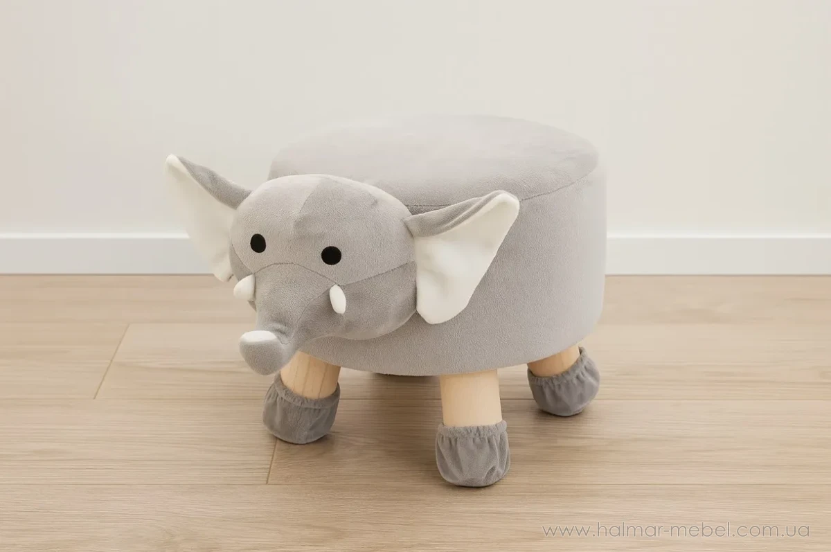 Дитячий пуф SŁONIK CHOMIC - чарівна новинка для наших маленьких користувачів. Цей елемент ідеально доповнить кімнату дитини, а також інтер'єр ясел, дитячого садочка або розвиваючих центрів, де допоможе створити комфортну і доброзичливу атмосферу. Пуф у формі слоника складається з надійного каркаса на дерев'яних ніжках і м'якого сидіння, які доповнюють декоративні елементи. Пуф SŁONIK CHOMIC - це зручне місце для сидіння малюка, а також гарна ідея для подарунка.
