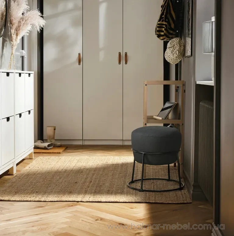 Пуф EMMISLÖV IKEA темно-сірий - стильна модель для сучасного інтер'єру, привертає увагу оригінальним і якісним виконанням. Конструкція складається зі сталевого каркаса і м'якого сидіння, візуально нагадує пробку від шампанського. Пуф EMMISLÖV простий у догляді, під час транспортування або зберігання пуфики можна ставити один на одного з метою економії місця.