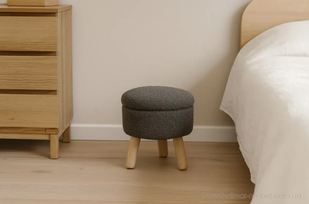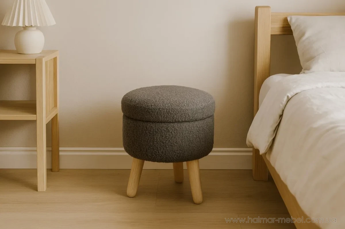 Пуф округлий на дерев'яних ніжках CHOMIK сірий
