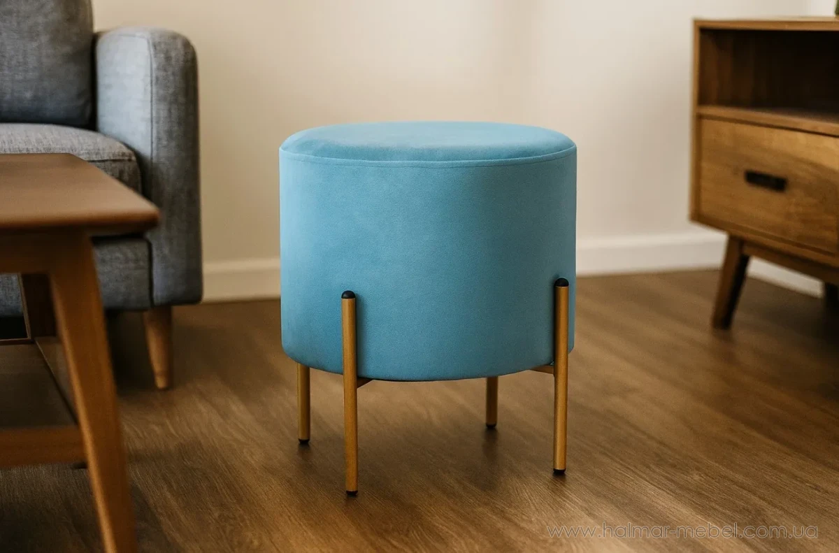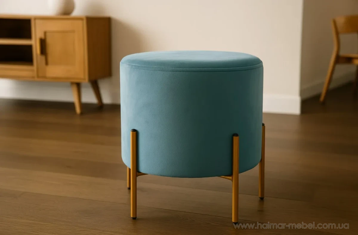 Пуф округлий на ніжках CHOMIK морський/золотий