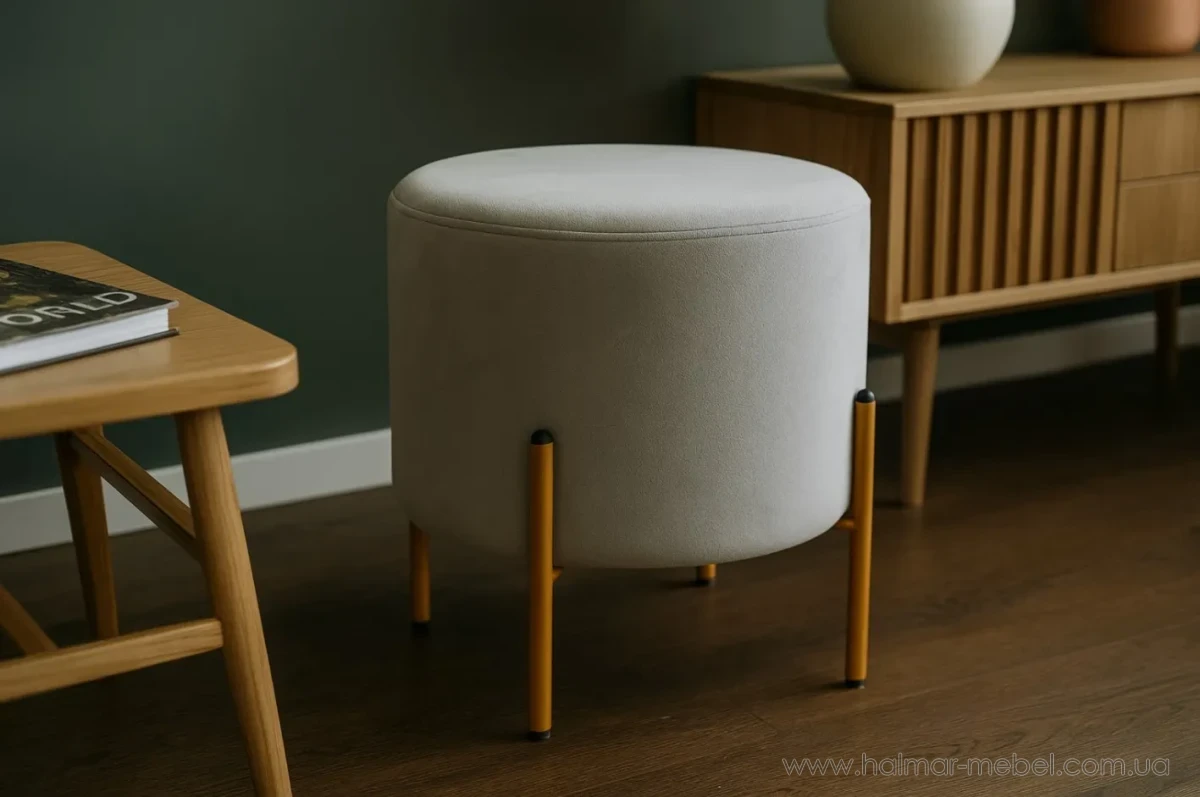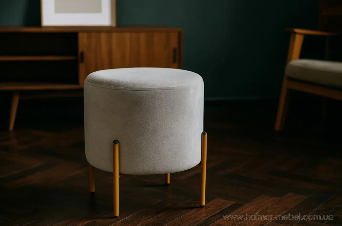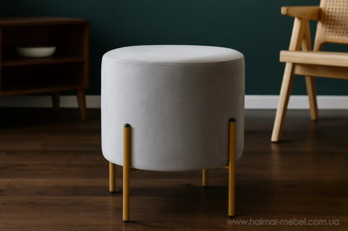 Пуф округлий на ніжках CHOMIK сірий/золотий